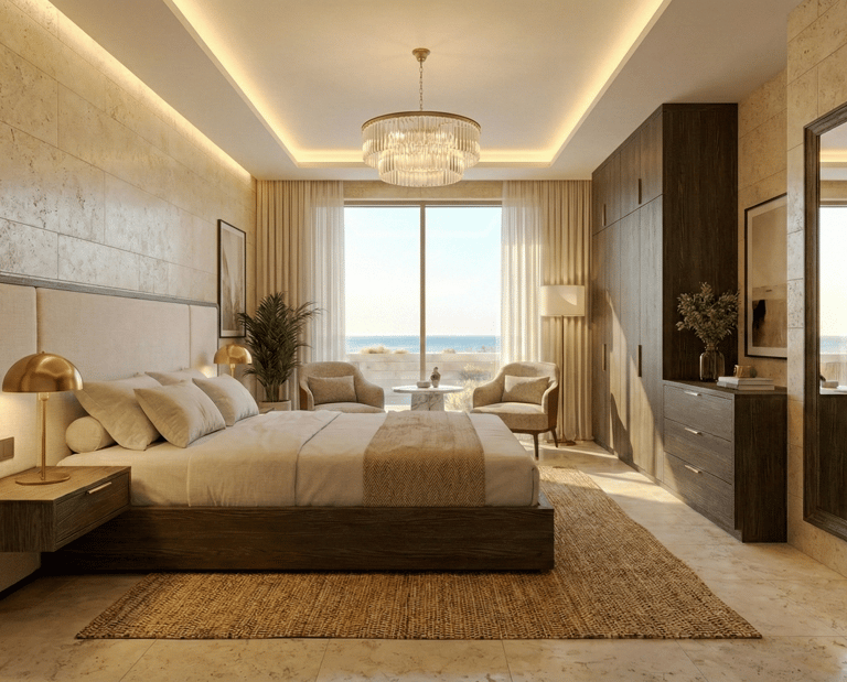 Waking Up to the Skyline. The master suite is an exercise in serenity. Automated sheer curtains gently part at sunrise to reveal the city. The room features acoustic dampening and a dedicated climate zone to ensure the perfect night's sleep.