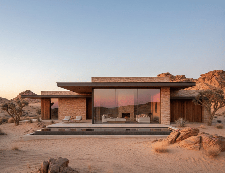 A private retreat in Ras al Khaima's sun-baked interior, using thermal mass and natural ventilation to maintain comfort. Earth-toned concrete and local stone connect the building to its landscape.