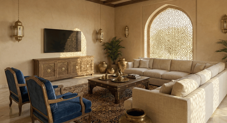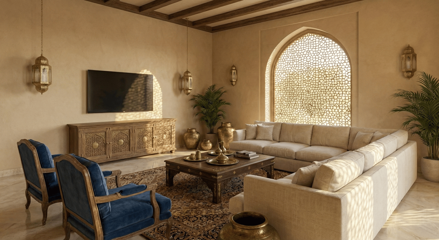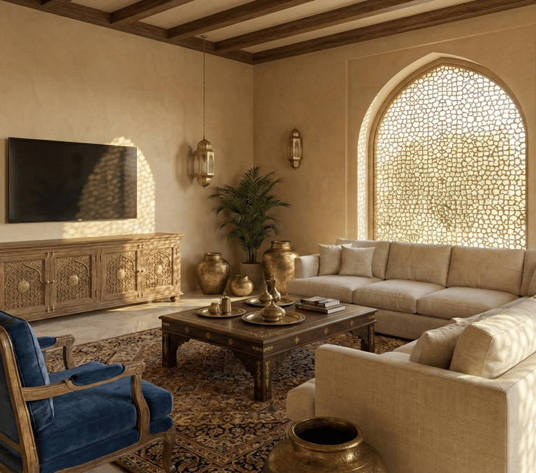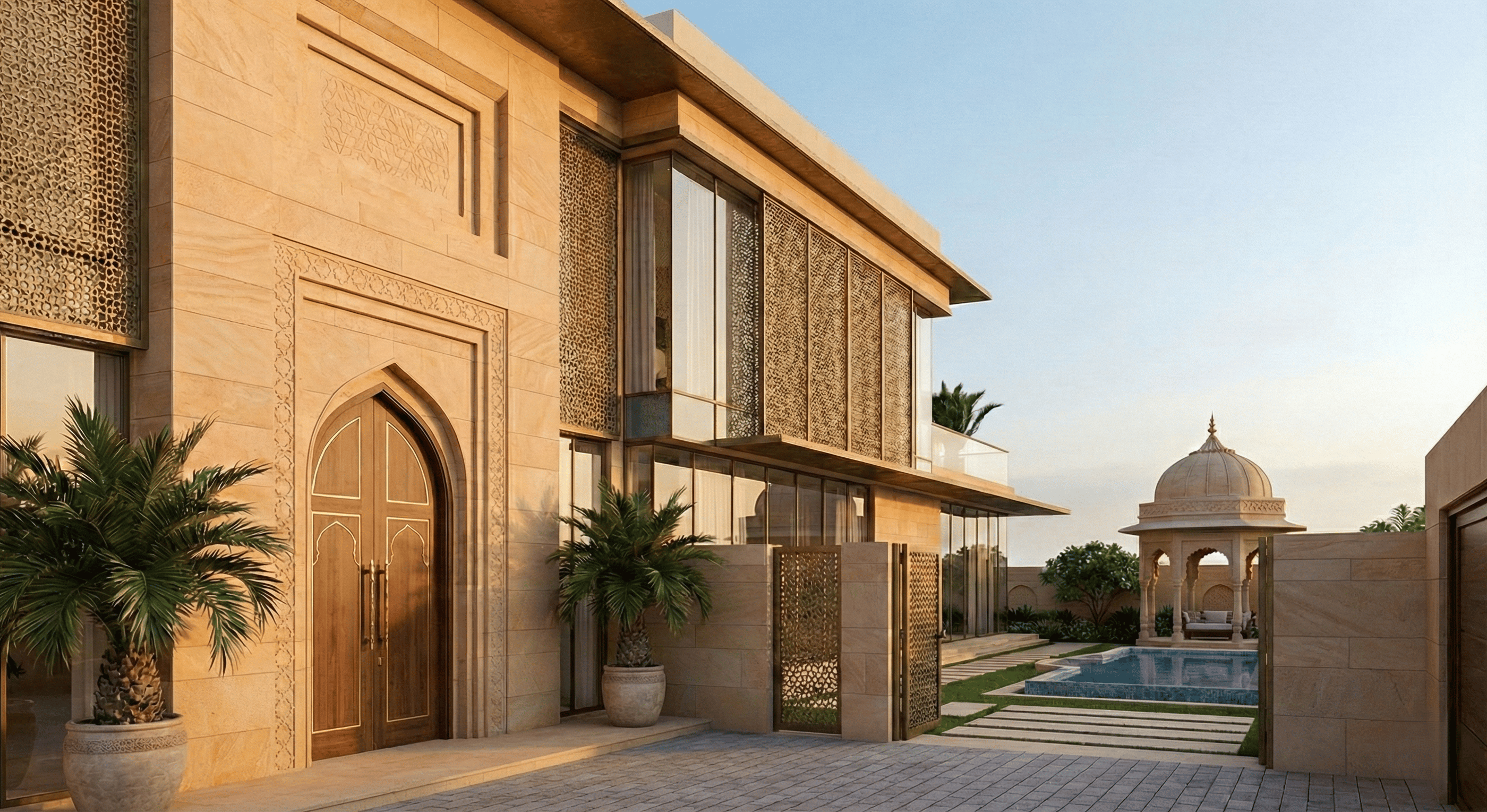 The Concept In a city defined by glass and steel, Sukoon Villa stands as a testament to the grounding power of earth and history. Named after the word for "peace" and "tranquility", a term shared by both Arabic and Hindi languages, this residence creates a spiritual bridge between the ancestral warmth of an Indian Haveli and the modern luxury of the Dubai lifestyle.