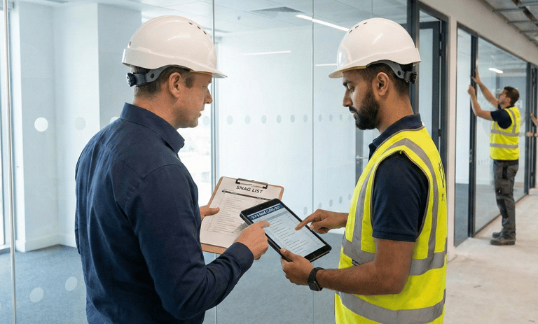 Snag close-out and completion pack (photos, checklists, sign-offs)